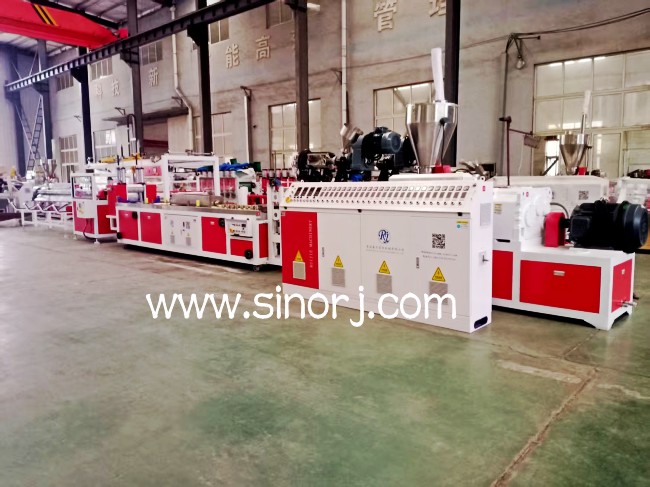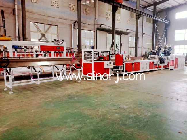 調試完成的pe共擠木塑生產線等待發貨中