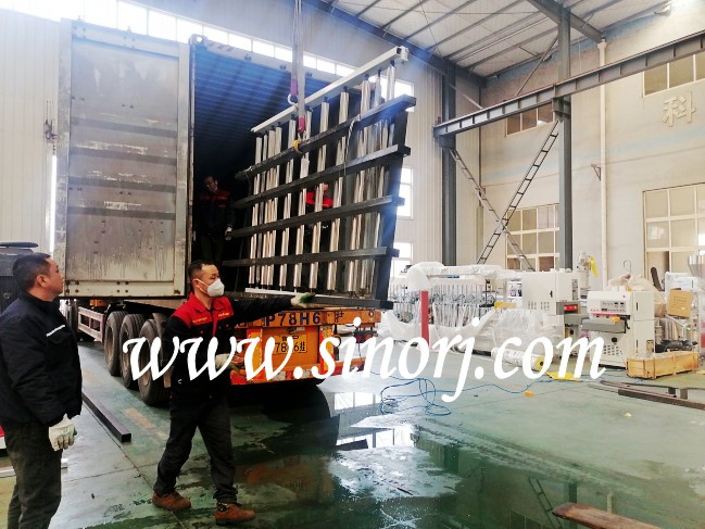 PVC木飾面生產線 型材生產線裝柜發貨中